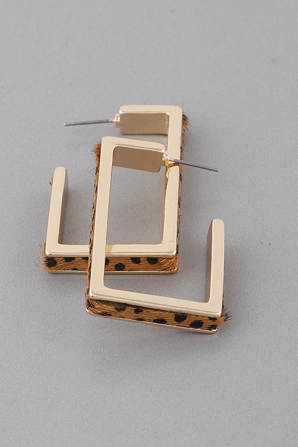 - * Animal Print Open Square Earrings