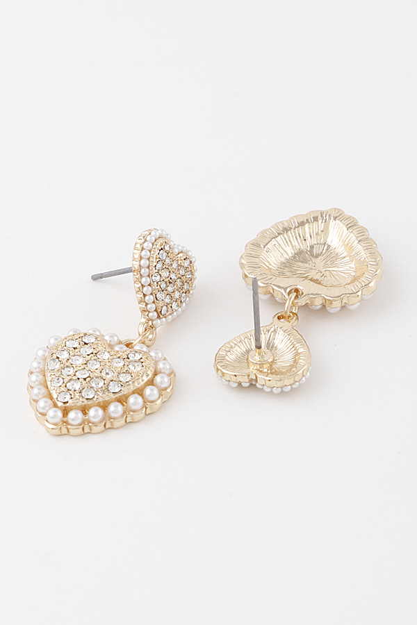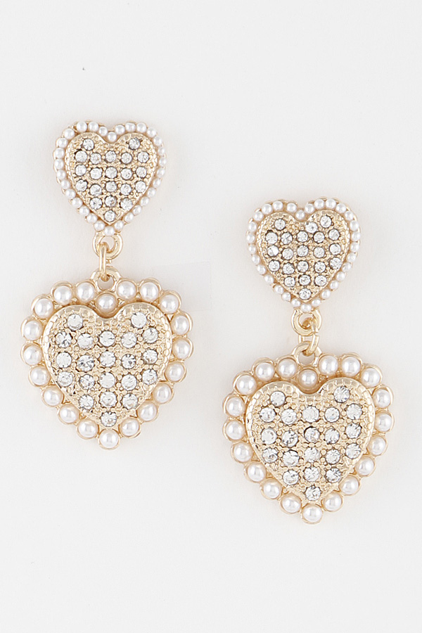 - * Jeweled Double Heart Drop Earrings