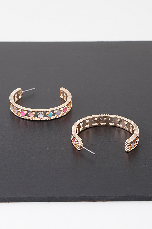 - * Multi Open Clover Hoop Earrings