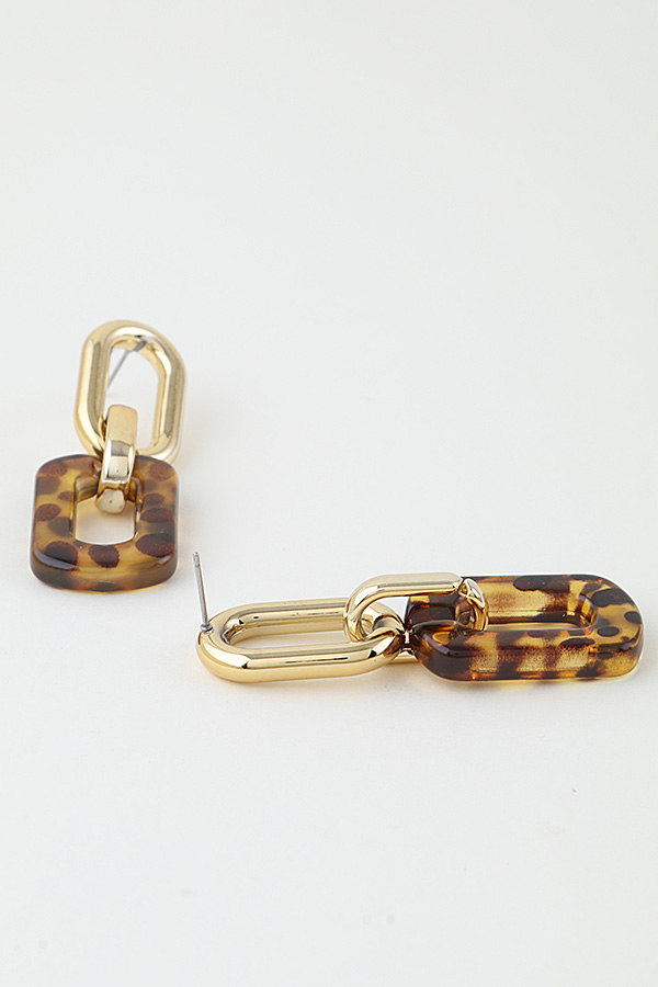 - * Two Toned Tortoise Link Chain Drop Earrings