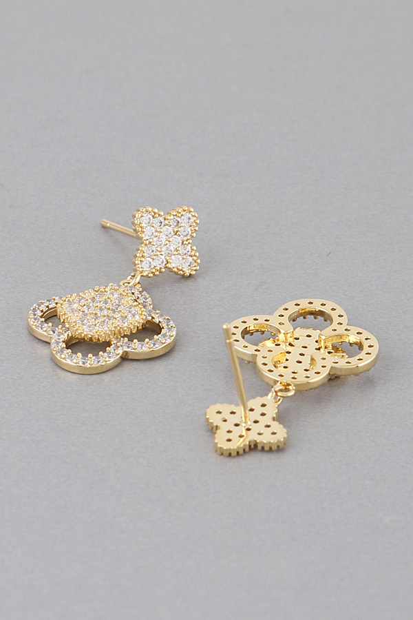 • * Gold Tone Studded Clover Drop Earrings