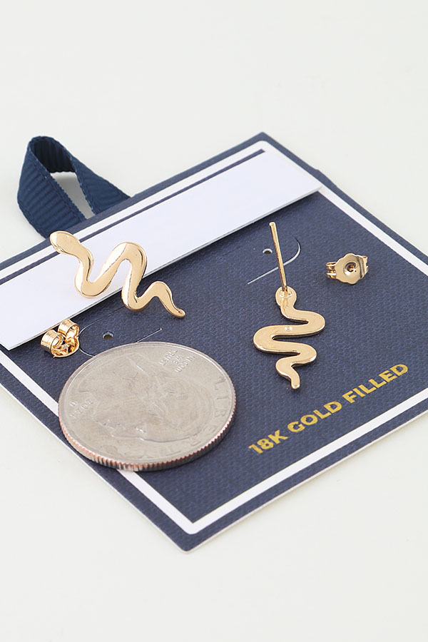 - * These are Slithering Snake Stud Earrings from H&D Accessories. They feature a sleek, coiled snake - shaped design, crafted with 18K Gold Filled. The minimalist yet striking silhouette offers a unique and stylish accessory option.