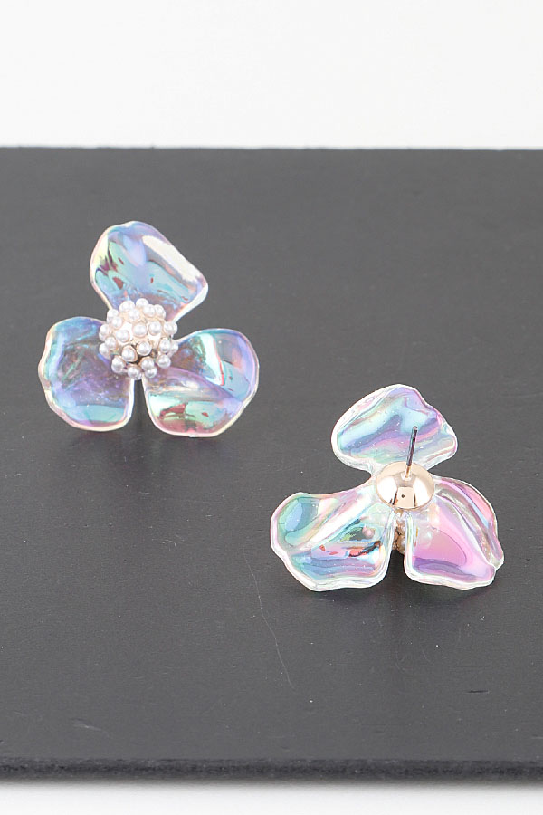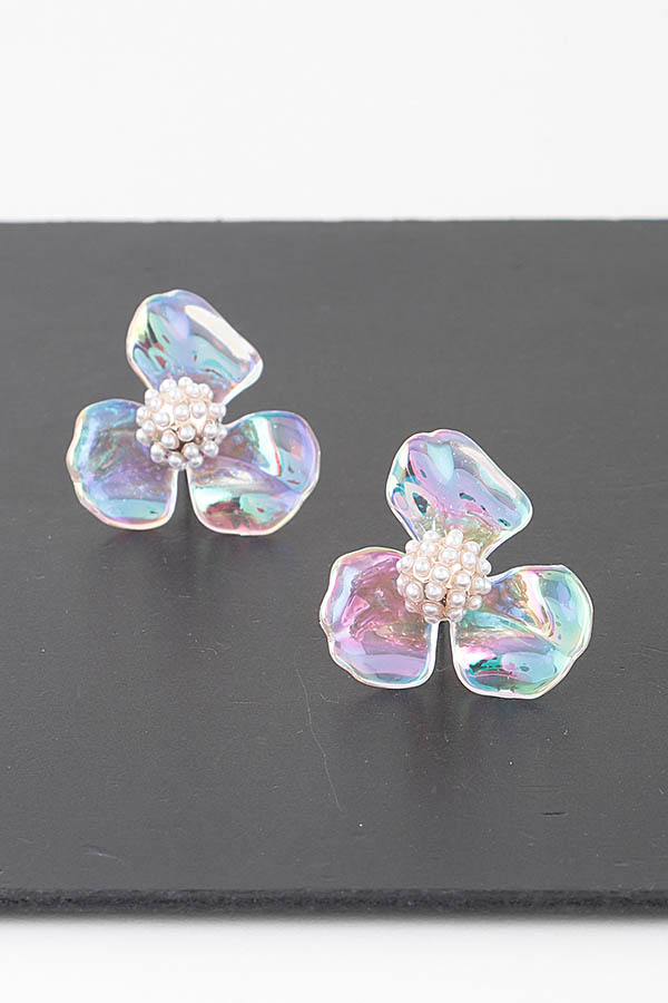- * Bubble Translucent Pearl Petal Flower Stud Earrings