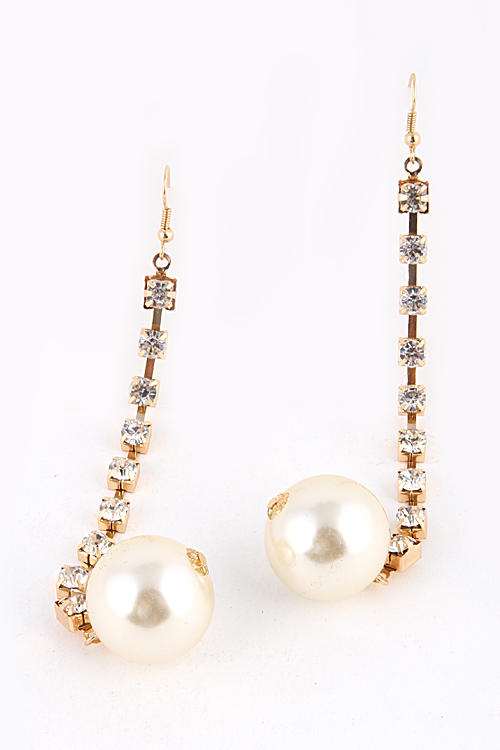 - * Pearl Cubic Rhinestone Drop Earring 5AAI12 * 5.5" approx.
