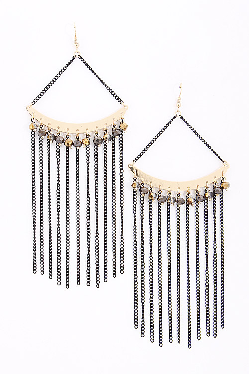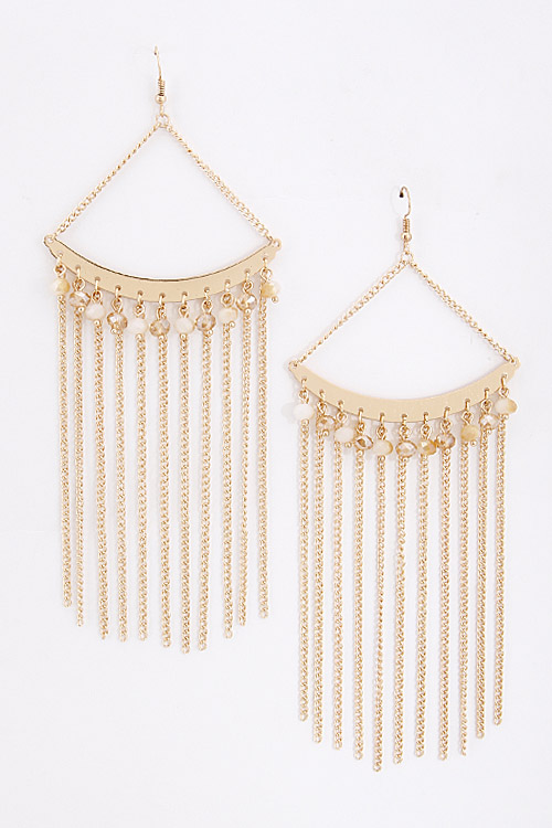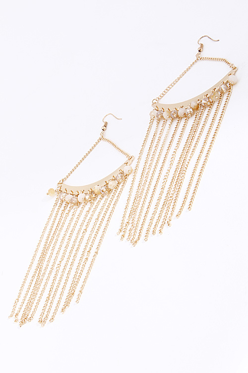 - *Crescent Moon Long Hook Earring With Beads And Fringes 6BAJ9 *2.6 X 6.5" approx.