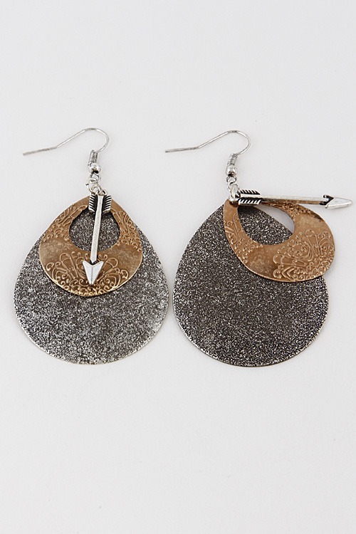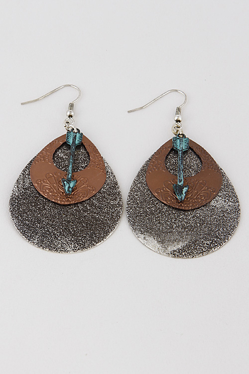 - * Metallic Flat TearDrop Earrings With Arrow Detail 7ABG1 * 1.5 x 3" approx.