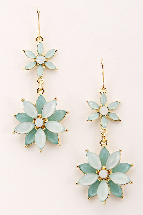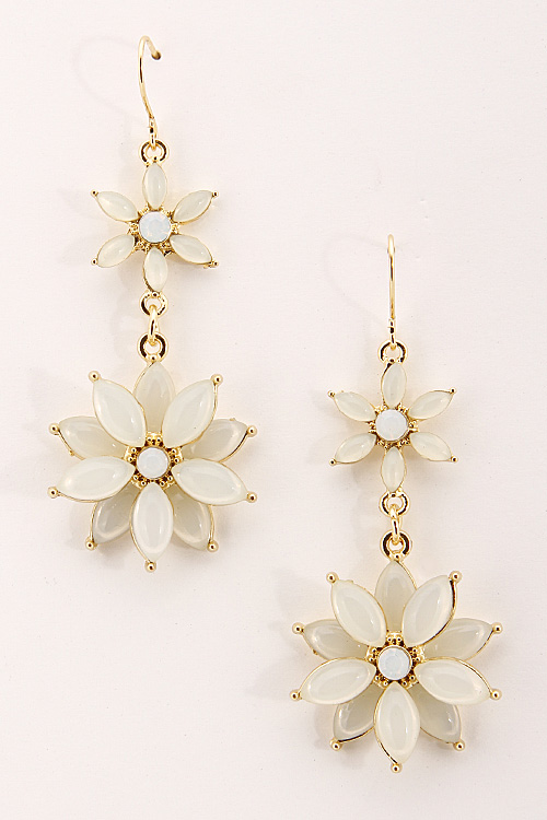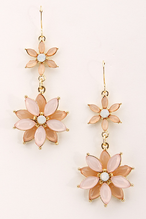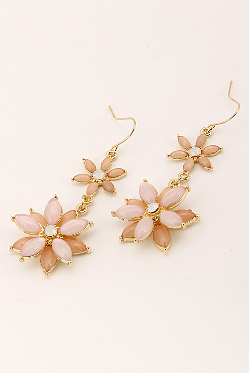 - * Long Flower Hook Earrings With Stone 6CAD6 * 1 X 2.2" approx.