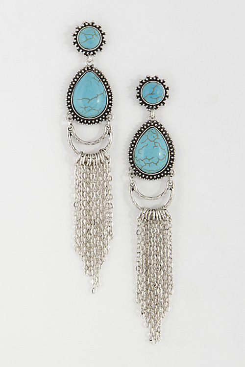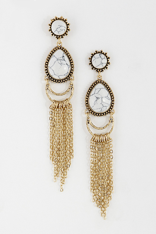 - * Vintage Long Fringed Earrings With Unique Stone 6DAJ5 * 0.6 X 4" approx.
