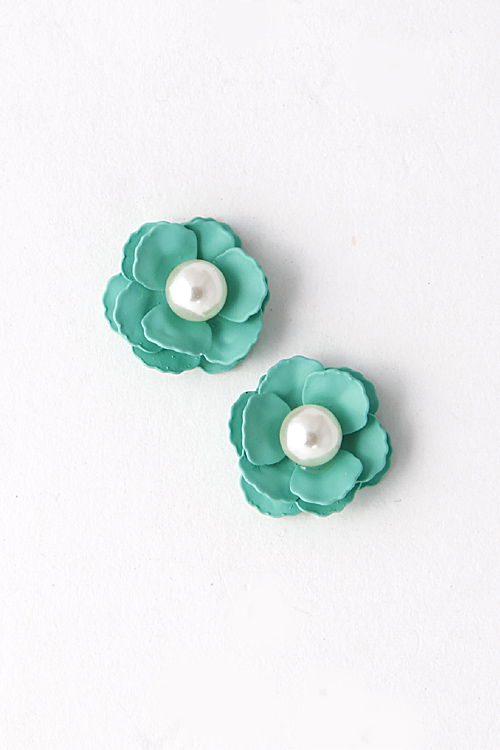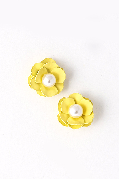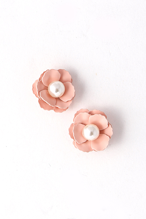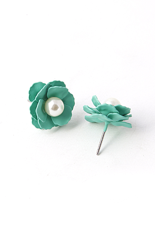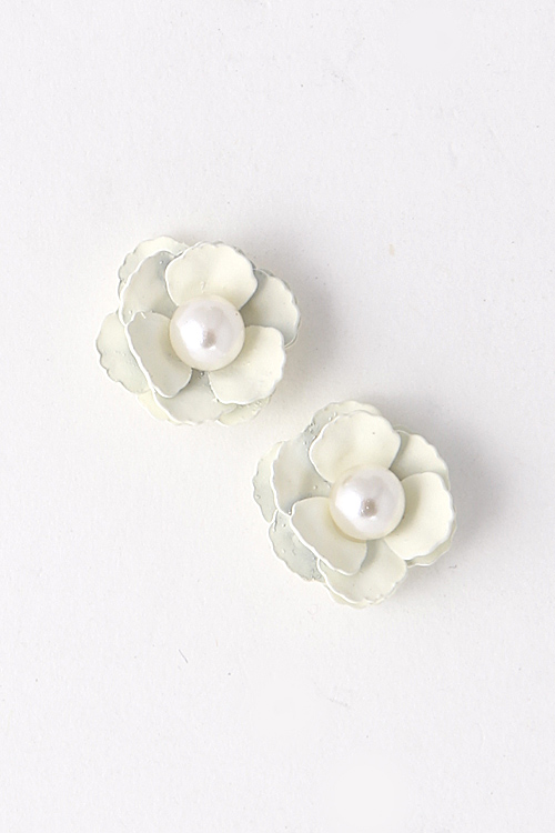 - * Pearl Centered Stud Flower Earring 5ECI1 * 0.75 X 0.75" approx.