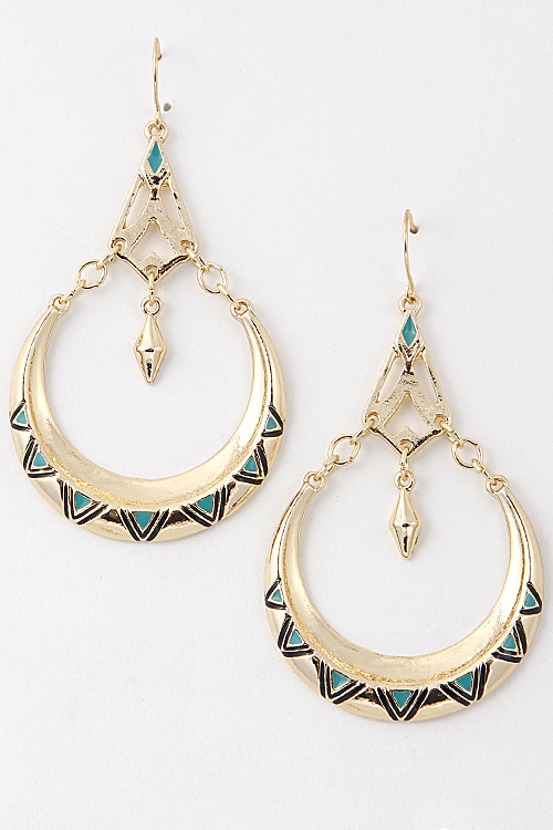 - * Crescent Moon Disk Dangle Earring 5BAG3 * 1.5 x 2.6" approx.