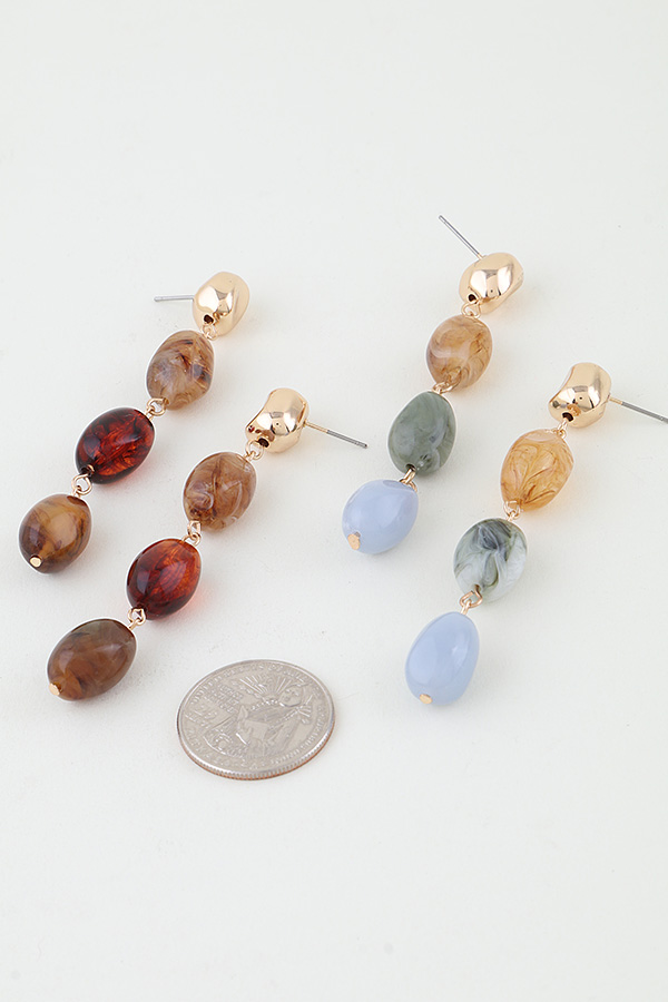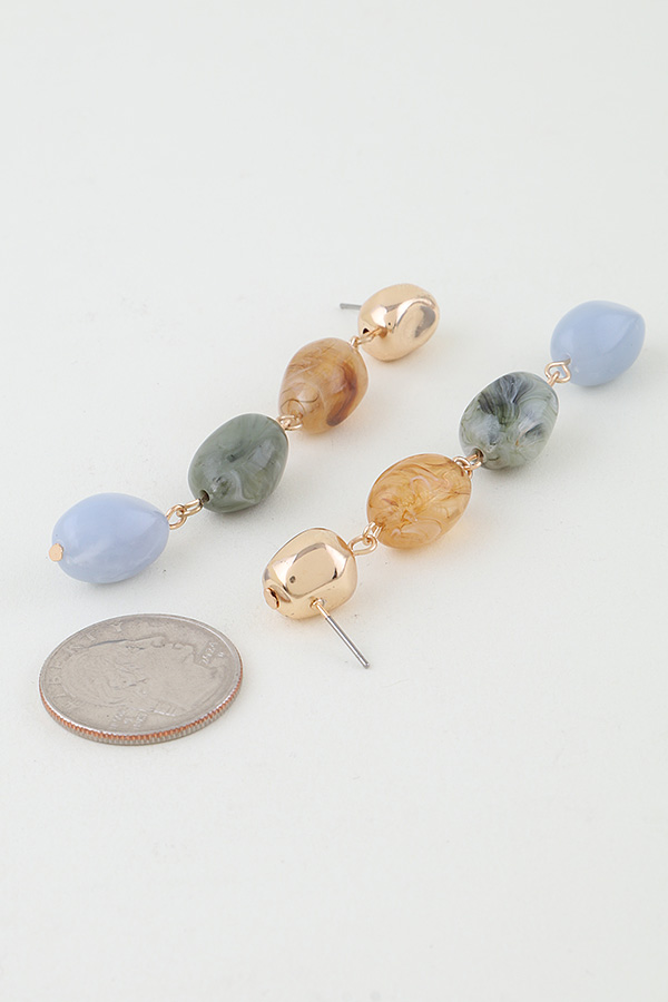 - * These Multi Marble Stone Drop Earrings from H&D Accessories feature a layered design with oval marble stones. Each stone has a unique, natural texture, connected by delicate metal links, and paired with a polished metal top piece. The meticulous craftsmanship ensures each stone is securely attached, creating a piece that blends organic charm with artistic detail, making it a distinctive addition to any jewelry collection.