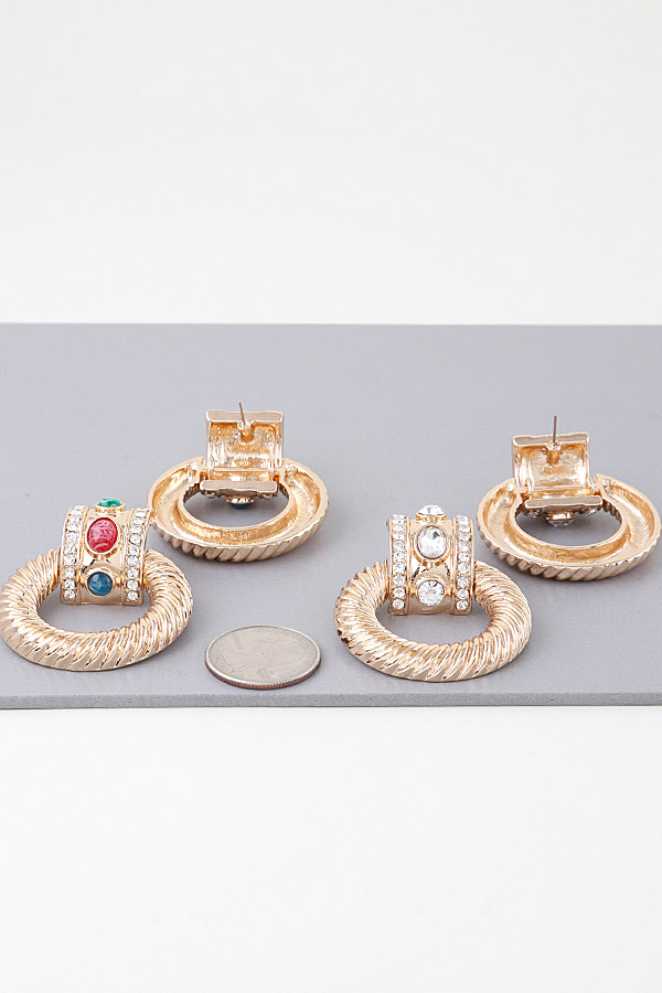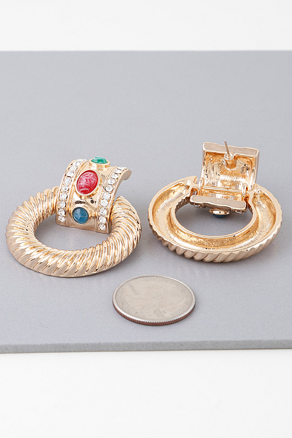 - * Introducing the "Radiant Harmony Hoop Earrings" from H&D Accessories. These stunning gold-tone earrings, adorned with a vibrant array of multi-colored stones, are designed to elevate any outfit. Their unique twisted hoop design adds a touch of elegance and flair, making them the perfect accessory for both casual and formal occasions. Embrace the beauty of color and shine with these exquisite earrings!