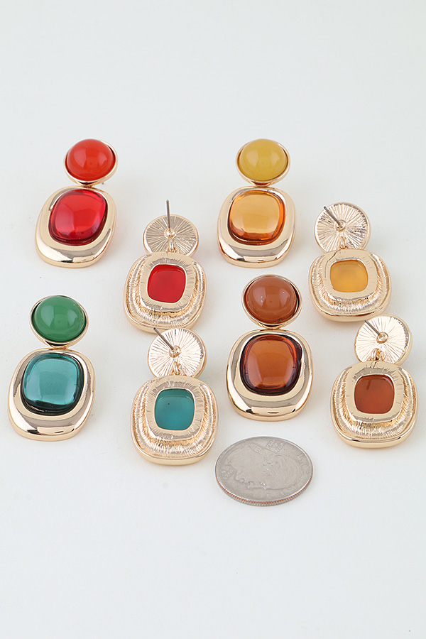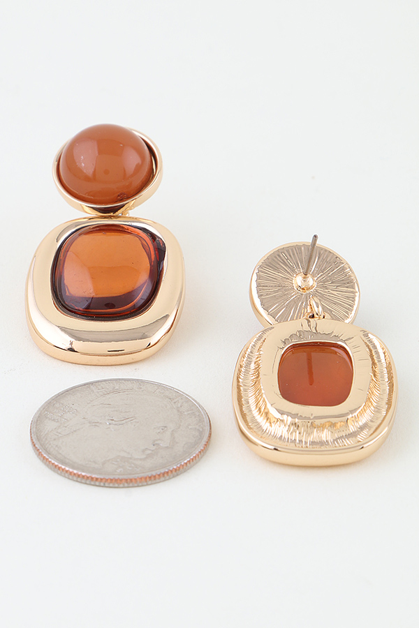 - * These are Solid Stone Frame Drop Earrings from H&D Accessories. They feature a distinctive design with layered stone elements framed in a sleek metal structure, combining texture and modern elegance. You can wear them to an art gala with a floor-length silk gown or to a high-end brunch with a tailored jumpsuit, adding a touch of sophisticated artistry to your look in various upscale occasions.