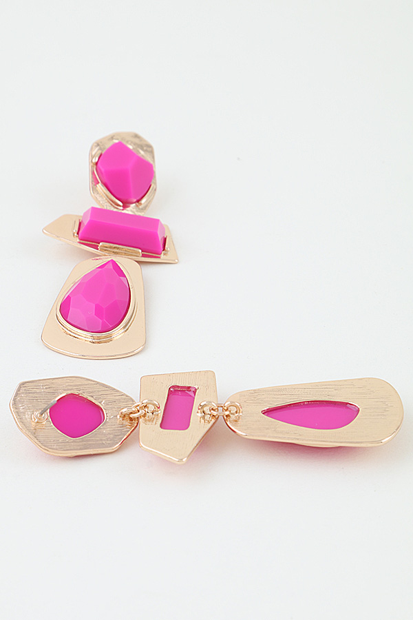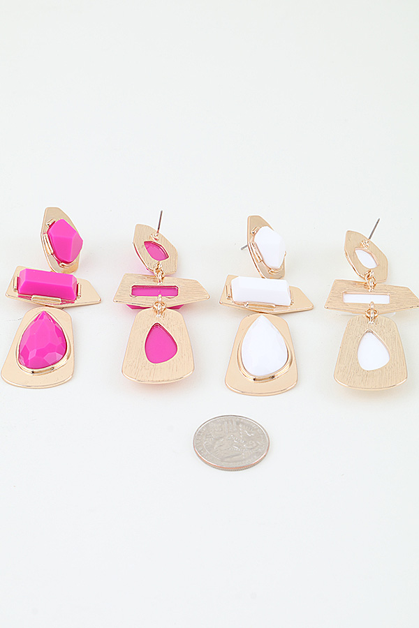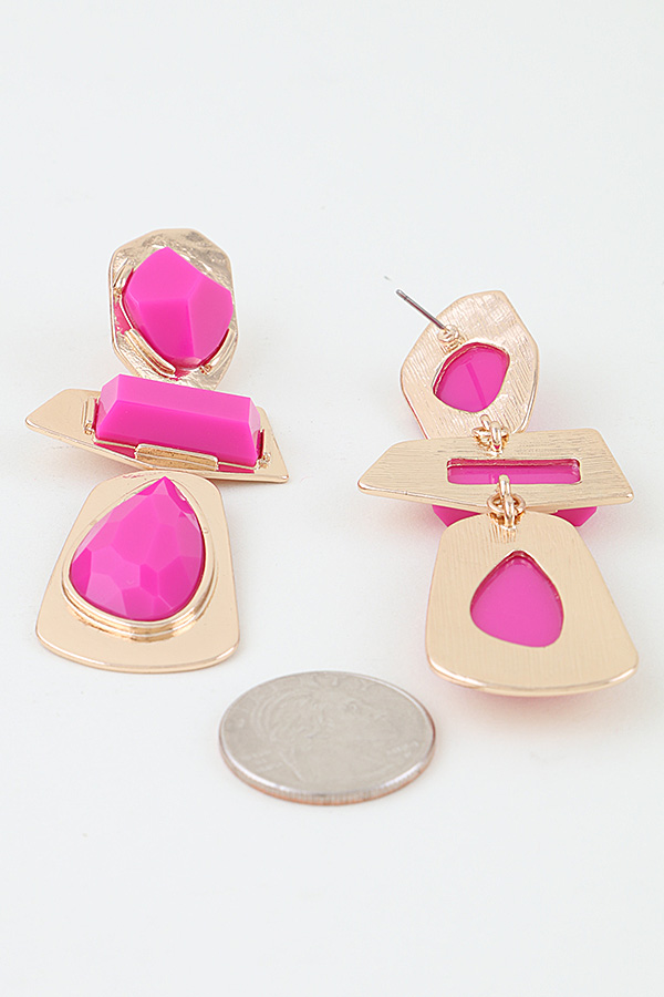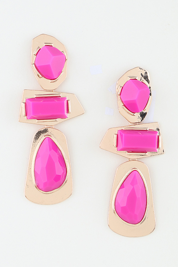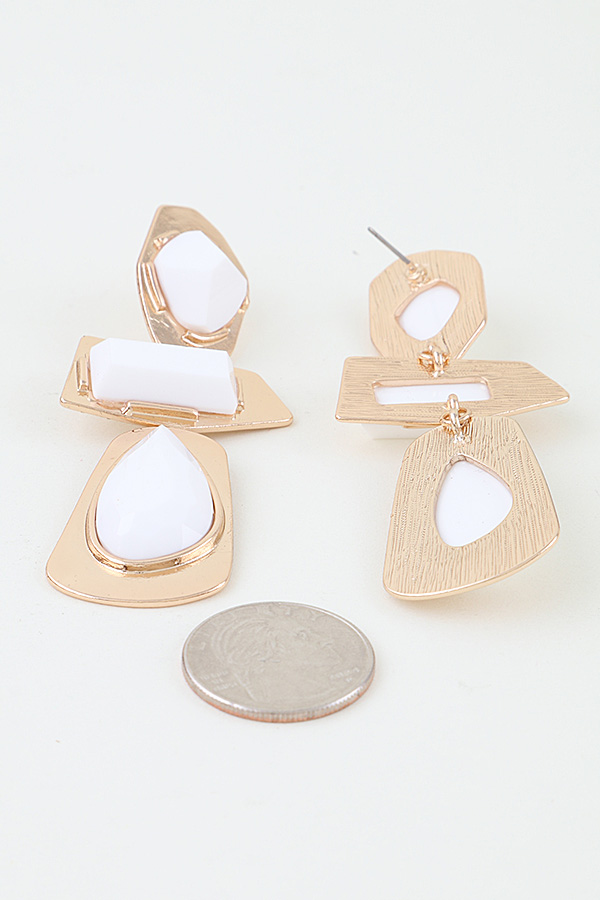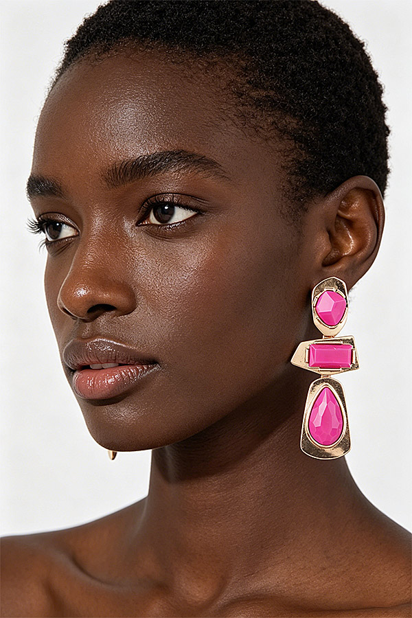 - * Retro Geometric Frame Drop Earrings from H&D Accessories feature a bold, vintage-inspired tiered design with three distinct faceted stone accents—an angular top stone, a rectangular middle stone, and a teardrop-shaped bottom stone—each set in irregular, textured metal frames that create a striking, structured silhouette, delivering a bold retro aesthetic perfect for elevating statement looks, night-out ensembles, and retro-themed events alike.