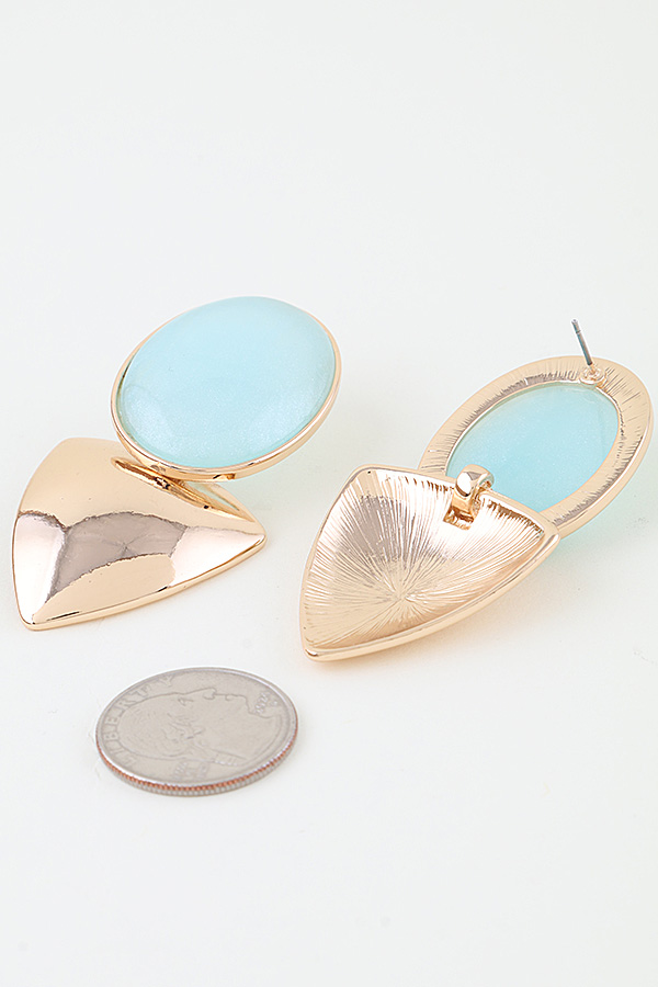 • * These Polished Grain Drop Earrings from H&D Accessories feature a sleek, polished metal base with a smooth, oval stone that showcases natural grain patterns. Their modern, geometric design is perfect for adding a refined touch to office attire or making a sophisticated statement at evening dinners. Crafted with meticulous detail, they offer both understated elegance and versatile wearability for any setting.