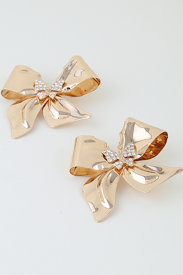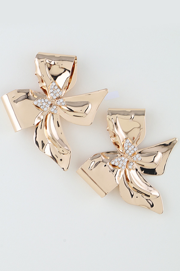- * This is the Bejeweled Butterfly Ribbon Earrings from H&D Accessories, featuring a sculpted ribbon-like butterfly silhouette adorned with subtle sparkling details for a bold yet elegant look. Their eye-catching design makes them perfect for special occasions—such as evening parties, weddings, or formal dinners—effortlessly elevating dresses, blouses, or tailored outfits with a touch of glamorous charm. Lightweight despite their statement shape, these earrings balance intricate detailing with wearability, making them a striking accessory for anyone seeking to add a refined, eye-catching element to their ensemble.