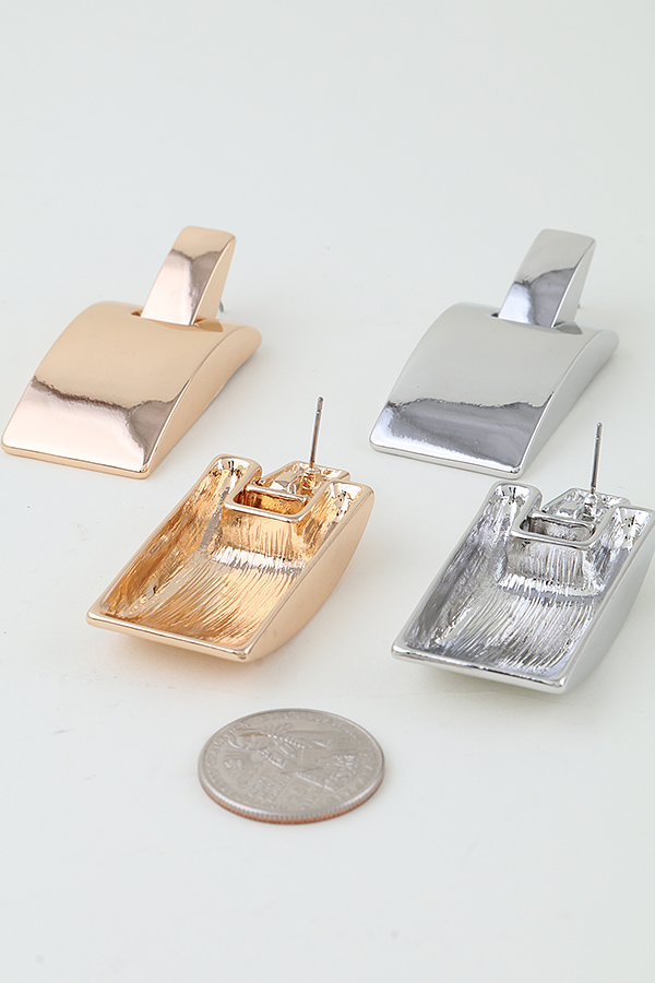 - * These Architectural Half Hoop Bar Stud Earrings from H&D Accessories showcase a bold, modern design defined by geometric precision. Each piece features a structured, rectangular bar base paired with a half-hoop element that interlocks seamlessly at the top, creating a sleek, three-dimensional silhouette. The smooth, polished finish of the metal enhances the sharp lines and minimalist structure, while the stud backing ensures a secure, streamlined fit against the ear.Crafted with a focus on architectural-inspired shaping, these earrings balance clean, industrial edge with understated sophistication—perfect for adding a contemporary touch to daily outfits or refining evening looks.
