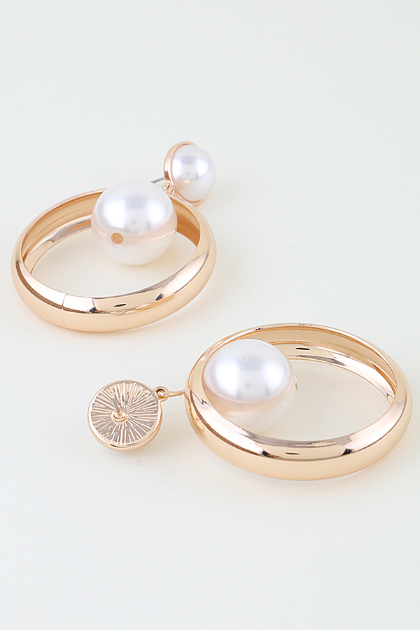 - * These Modern Pearl Hoop Drop Earrings from H&D Accessories feature a sleek, polished hoop with a lustrous pearl suspended at its center, anchored by a smaller pearl at the top. Their bold, contemporary design is perfect for making a statement at evening events or adding a sophisticated touch to daytime brunch outfits. Crafted with meticulous detail, they offer both striking visual appeal and versatile wearability for any occasion.