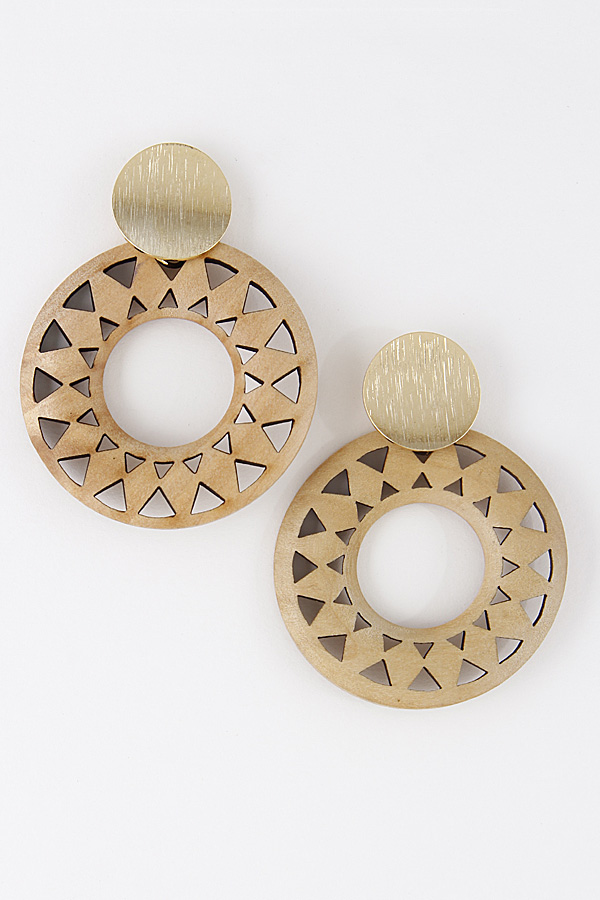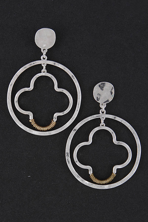 Flower & Circle Flat Metallic Earrings 7JCB4