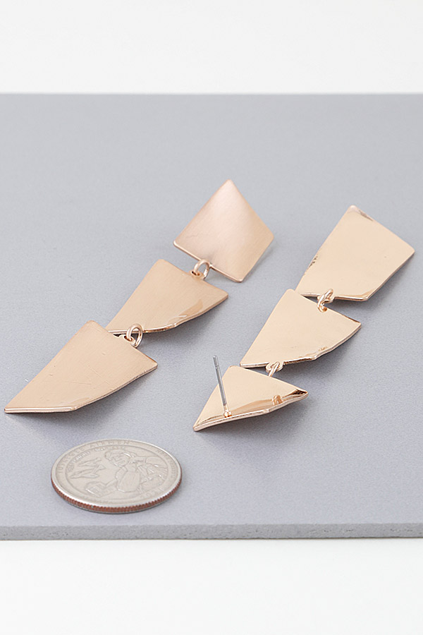 - * Elevate your style with the "Golden Geometry Drop Earrings." These stunning triple geometric earrings from H&D Accessories are crafted from luxurious gold-plated metal, making them the perfect statement piece for any occasion. Embrace elegance and sophistication with every wear.