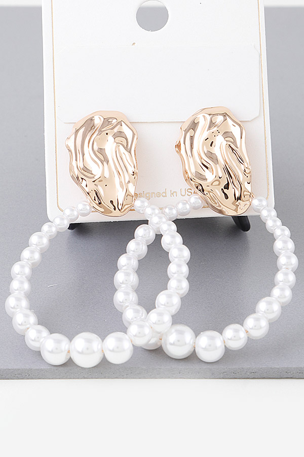 • * Introducing the "Shiny Ripple Pearl Drop Earrings" – a stunning pair of gold and white pearl earrings that embody elegance and sophistication. Perfectly designed to catch the light, these earrings will elevate any outfit, making you the center of attention. Experience the beauty of H&D Accessories with these exquisite pieces that blend timeless style with modern flair.
