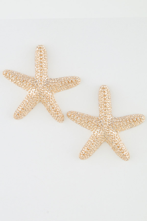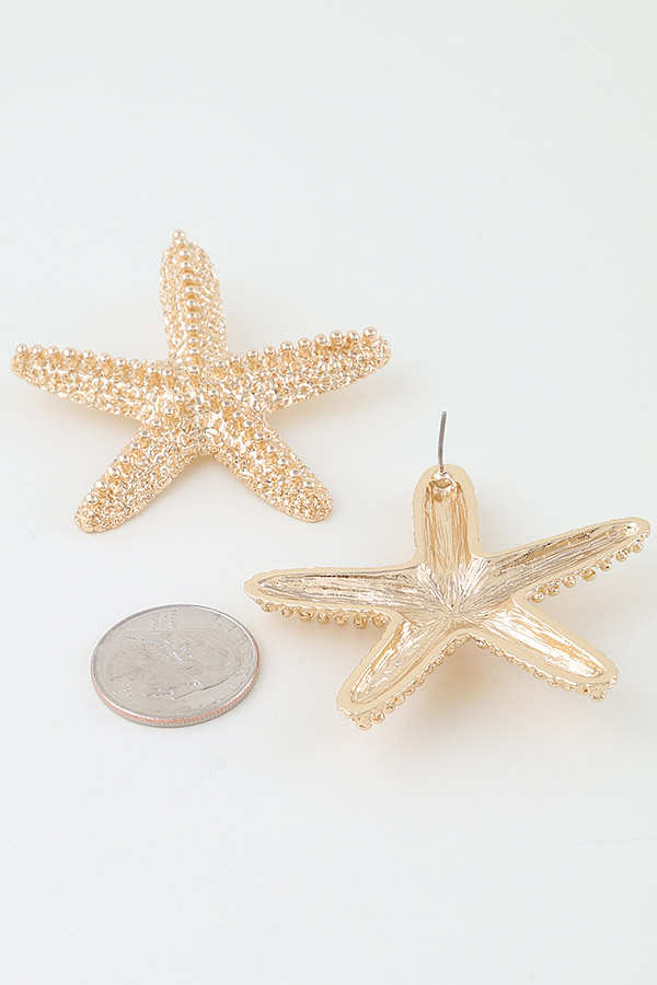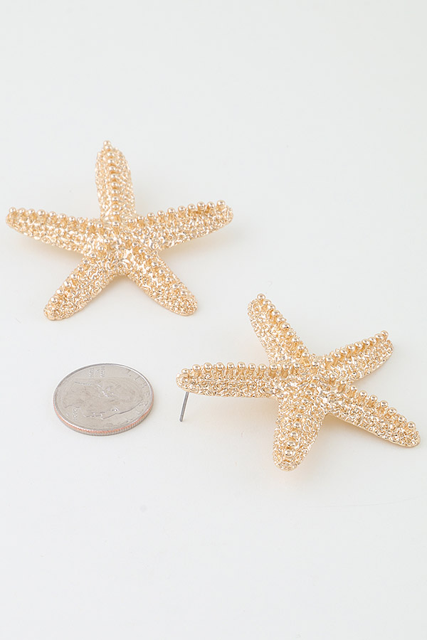 - * These Shimmering Starfish Earrings from H&D Accessories capture the essence of the ocean with a touch of glamour. Each earring is designed in the shape of a starfish, crafted with a textured surface that gives a sparkling, shimmering effect. The golden - toned finish enhances their elegant and beach - inspired aesthetic, making them a perfect accessory for those looking to add a nautical and stylish flair to their outfit.