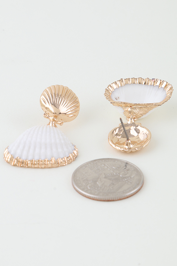- * The Capri Coast Shell Drop Earrings from H&D Accessories feature a two-part design with a rounded, textured upper element connected to an elongated, fan-shaped lower piece that mimics the delicate form of a seashell. The earrings combine a finely detailed, organic texture with smooth, polished edges, creating a harmonious blend of natural inspiration and refined craftsmanship. Their vertical drop silhouette offers a subtle, graceful movement. These earrings add a touch of effortless coastal elegance to any ensemble. They are perfectly suited for a beach-themed event like a seaside wedding or a summer celebration, and can also elevate a casual outfit for a relaxed daytime outing.
