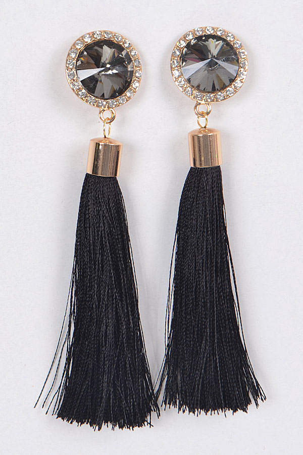 - * Circle Crystal & Tassel Earrings