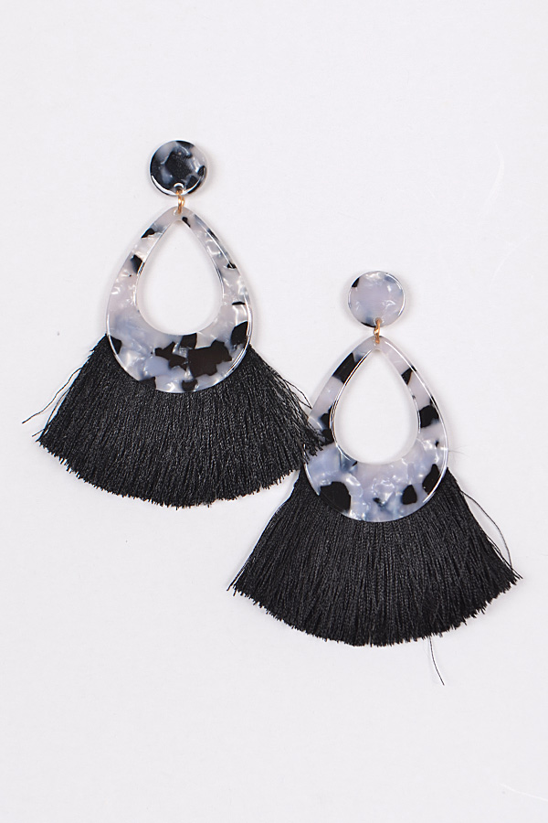 - * Acetate Teardrop Earrings With Tassel