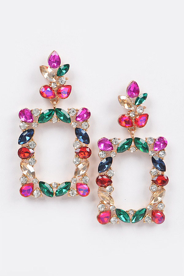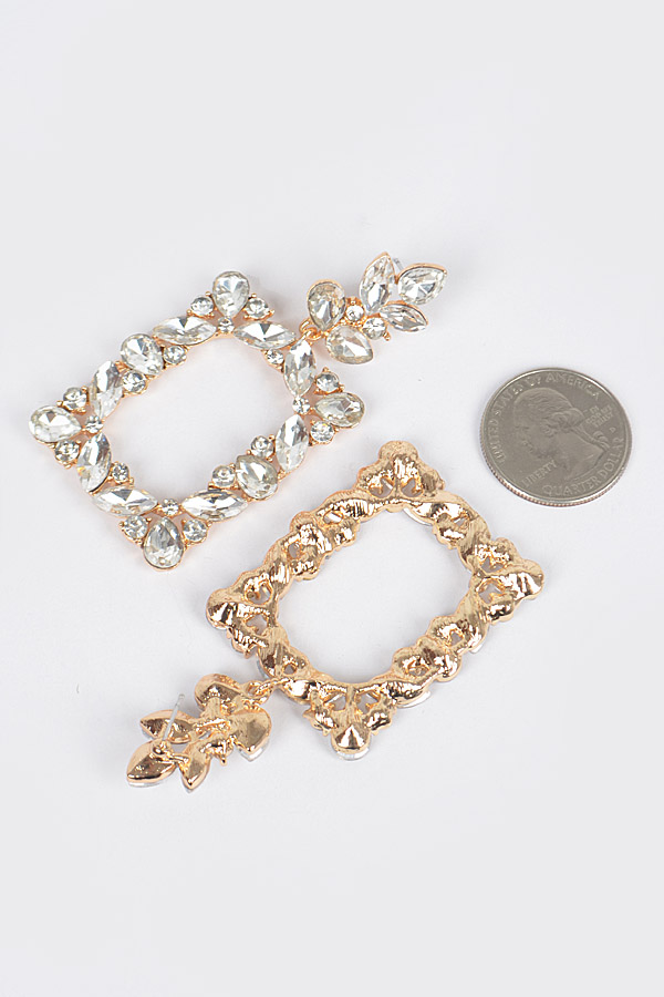 - * Leaf Rectangle Dangle Rhinestone Earring