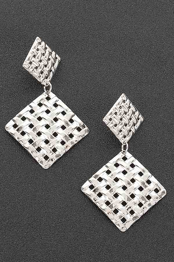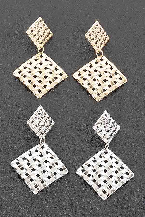 - * Introducing "Woven Luxe: Gold Plated Elegance" – these stunning square-shaped earrings combine the richness of gold plating with the unique texture of woven fabric, making them a must-have accessory for any fashion-forward individual. Elevate your style with a touch of sophistication and artistry.