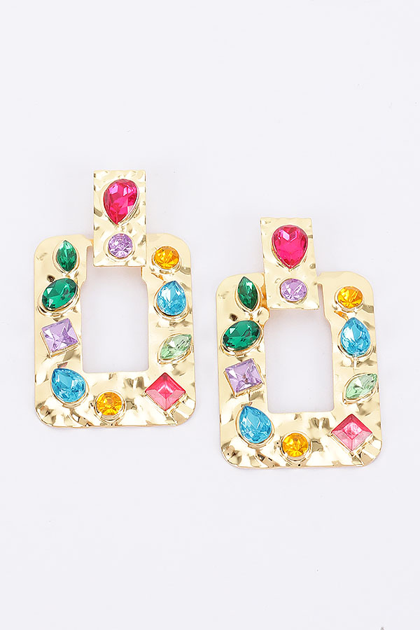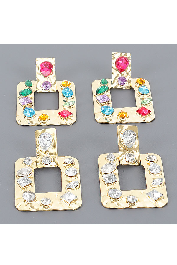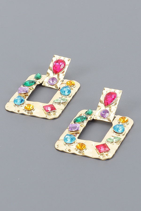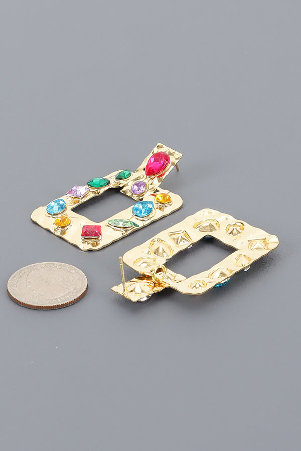 - * Introducing "Rhinestone Party Earring" – these stunning gold earrings adorned with vibrant rhinestones are the perfect accessory to elevate any outfit. With their unique design and eye-catching colors, they are sure to make a statement at any event. Don't miss out on the chance to shine with these exquisite pieces from H&D Accessories!