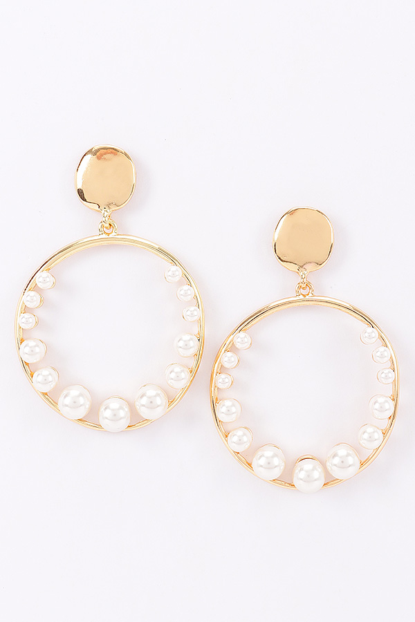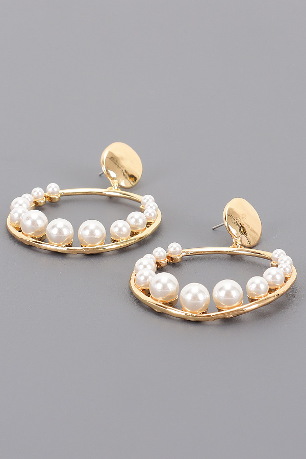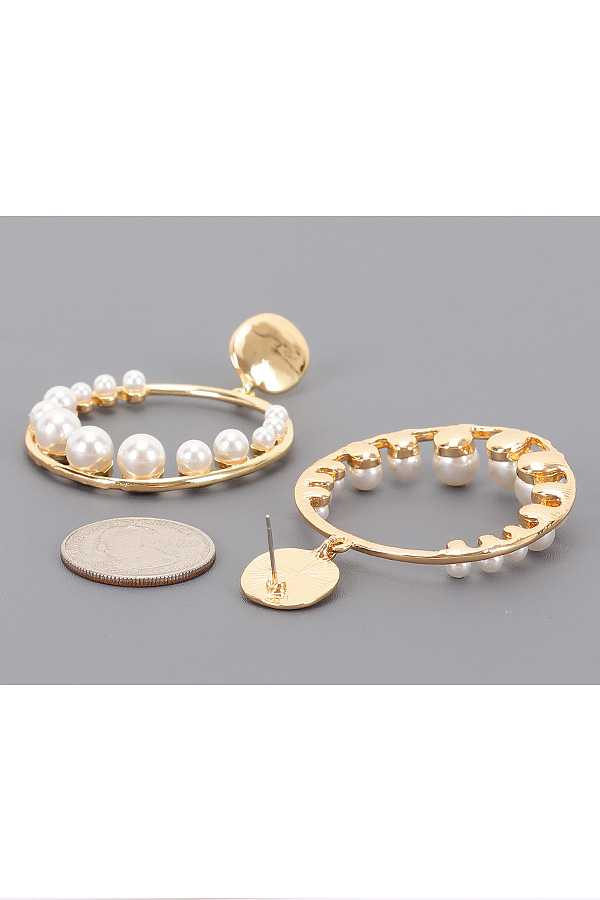 - * This pair of Metal Round Pearl Earrings from H&D Accessories features a circular metal design adorned with pearls. The earrings have a dangling structure, with a metal top piece connecting to the round pearl - decorated hoops. The combination of metal and pearls gives them an elegant and stylish look.
