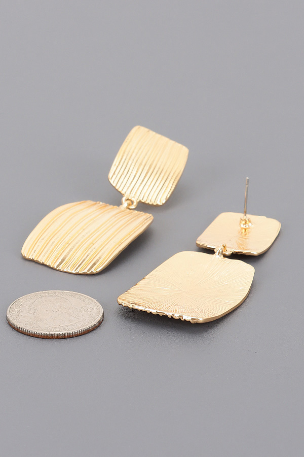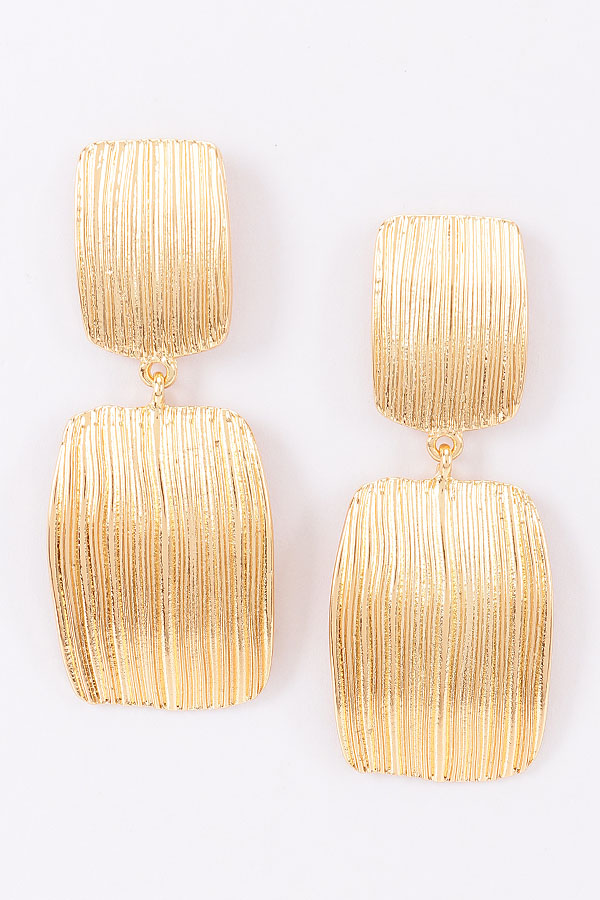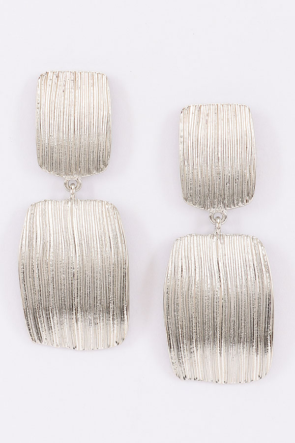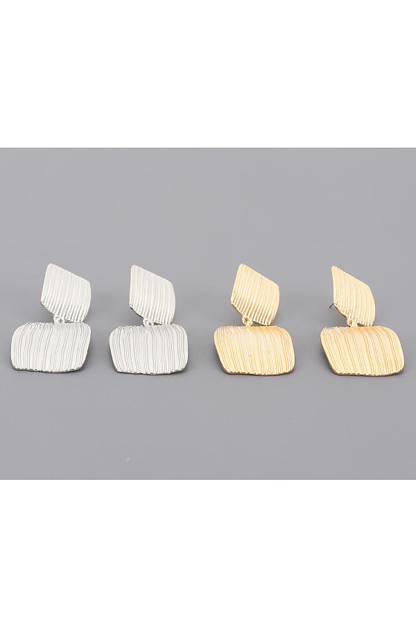• * These are Metal Vintage Earrings from H&D Accessories. They feature a two - tiered design with rectangular metal pieces. Each earring has a smaller rectangular top part and a larger rectangular bottom part, both adorned with a textured, ridged pattern that gives a retro feel. The metal has a polished finish, ensuring a sleek and eye - catching look. Perfect for adding a touch of vintage charm to outfits, they suit occasions like retro - themed parties, art gallery visits, or pairing with classic - style dresses and blouses for a stylish, nostalgic ensemble.