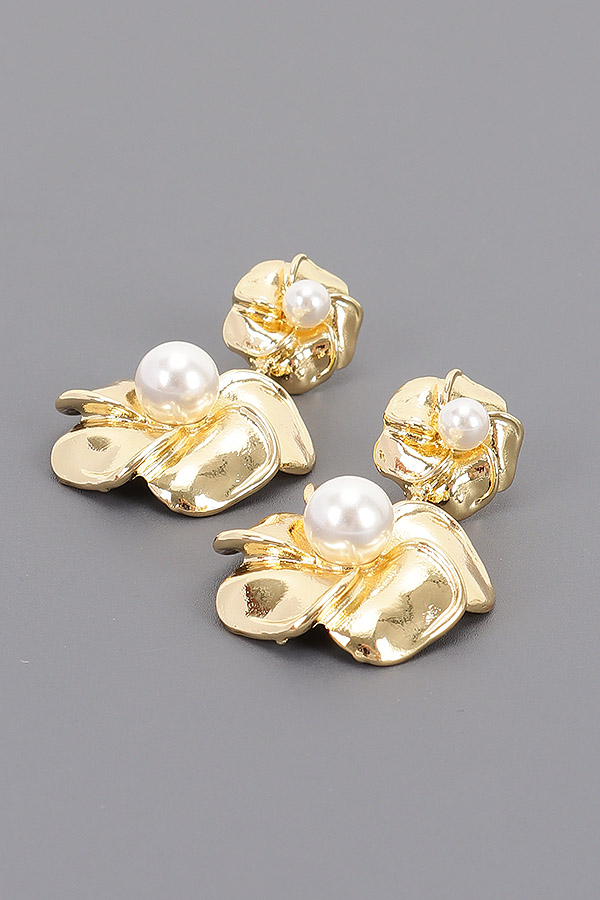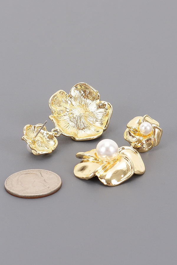 • * This pair of Metal Vintage Pearl Earrings from H&D Accessories features a floral design. The earrings have layered flower - shaped metal components with pearl accents at the centers. The combination of the metal flowers and pearls gives them an elegant, retro appearance.