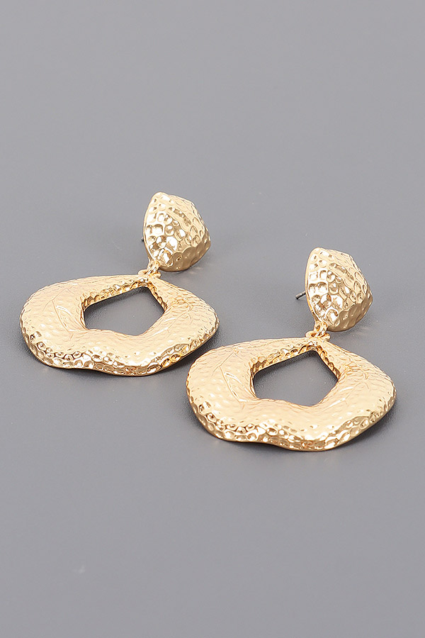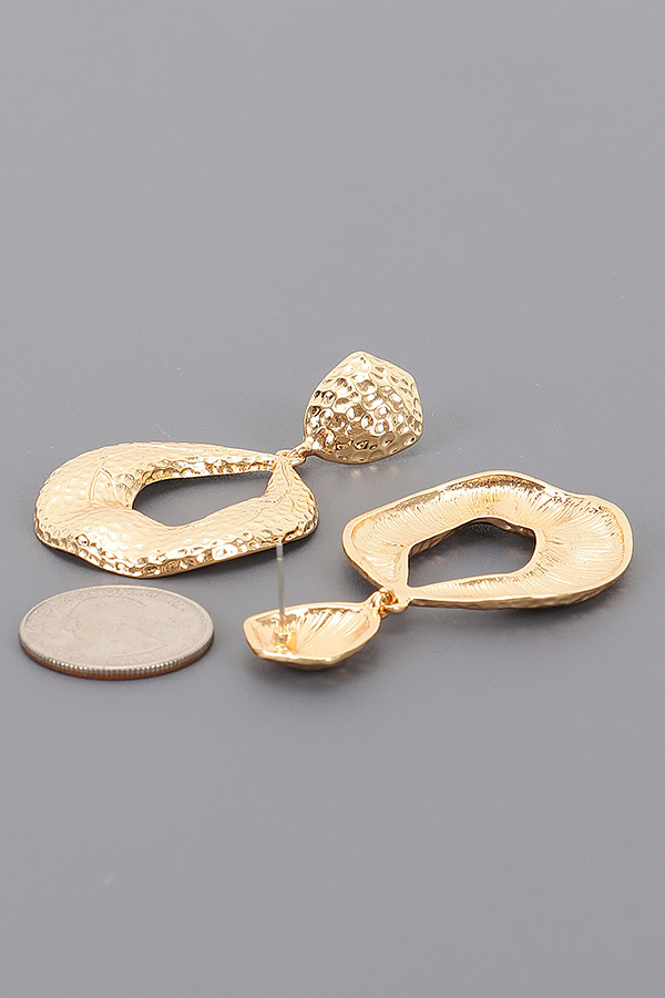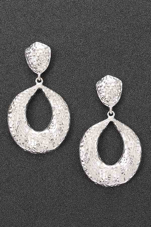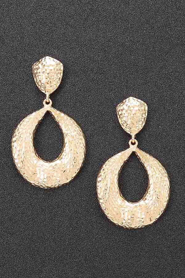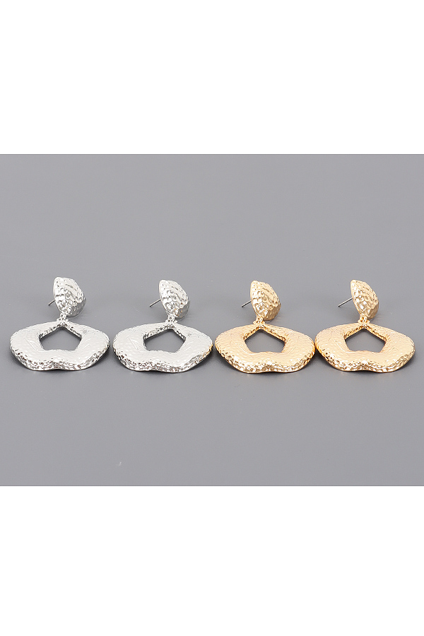 • * These are Metal Vintage Earrings from H&D Accessories. Each earring features a two-tiered design: the top tier is a small, irregularly shaped metal component with a hammered texture, while the bottom tier is a large, teardrop-shaped open frame that shares the same textured finish. The metal has a polished, metallic sheen, enhancing the vintage charm. Lightweight in construction, they offer comfortable wear. Perfect for adding a retro-inspired flair to outfits, they suit occasions such as vintage-themed parties, art gallery openings, or pairing with high-neck blouses and tailored skirts for a sophisticated, nostalgic look.