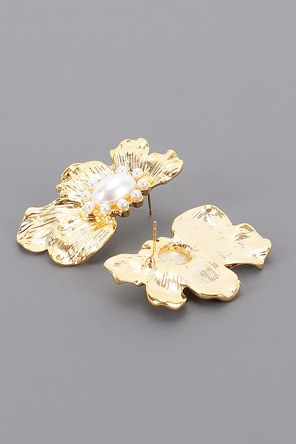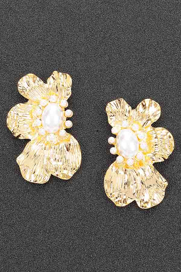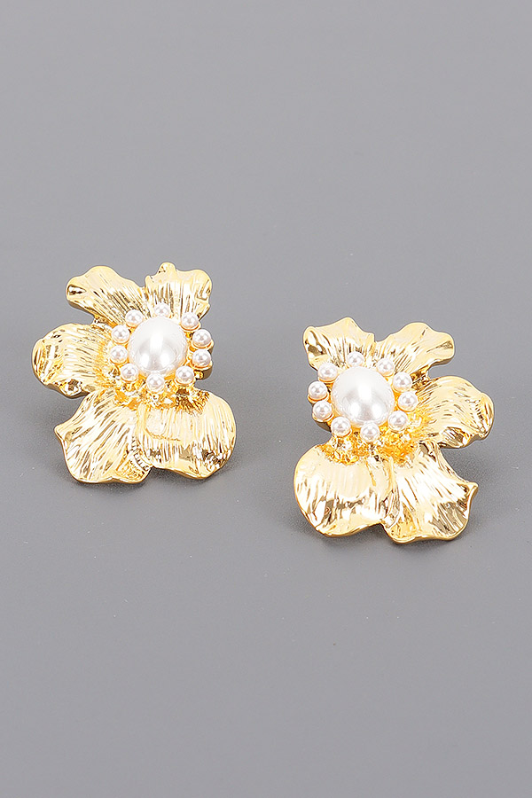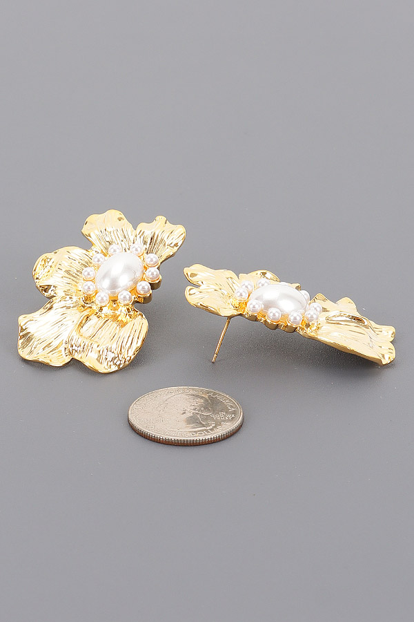 - * These Metal Pearl Earrings from H&D Accessories showcase a charming floral design. Each earring features a metal - crafted flower shape, with a central pearl and a ring of smaller pearls around it, creating an elegant and delicate look.