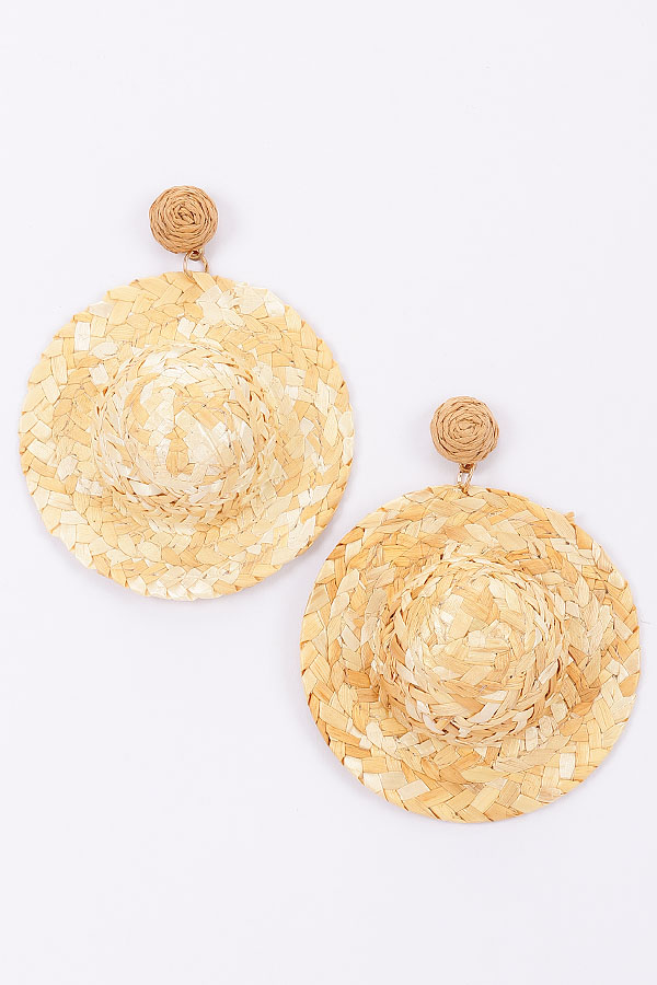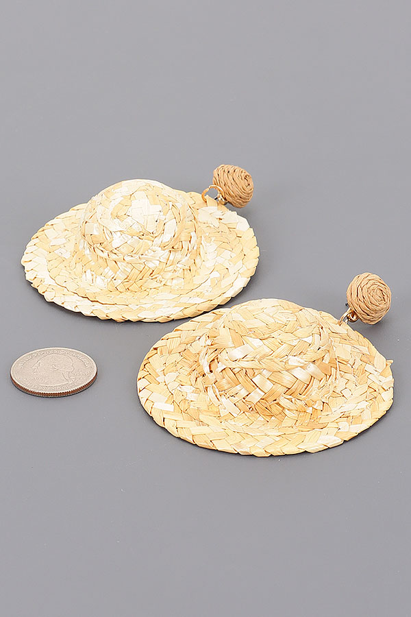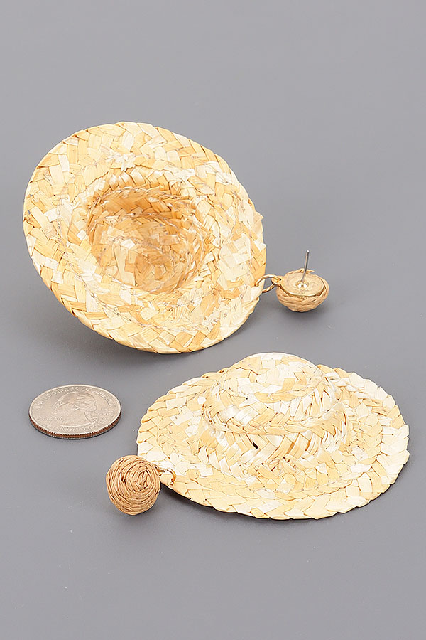- * This Straw Earring from H&D Accessories features a design shaped like a straw hat with a woven texture and a small decorative element at the top. It has a unique and stylish appearance, giving off a playful and trendy vibe.Ideal for complementing outfits during summer activities such as beach trips, picnics, or outdoor concerts, matching the relaxed and sunny atmosphere.