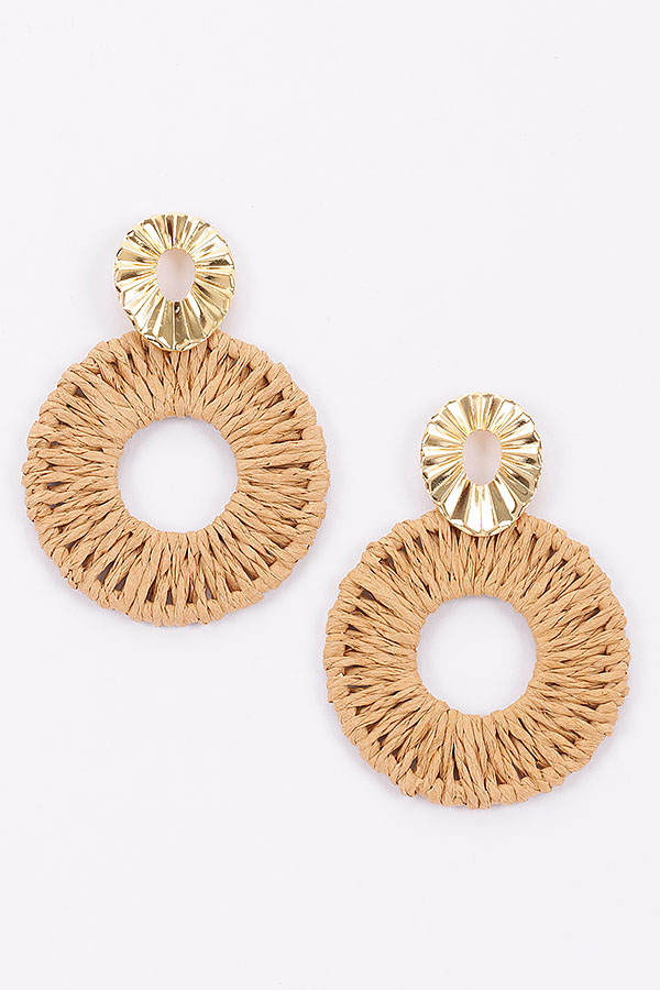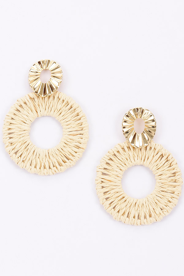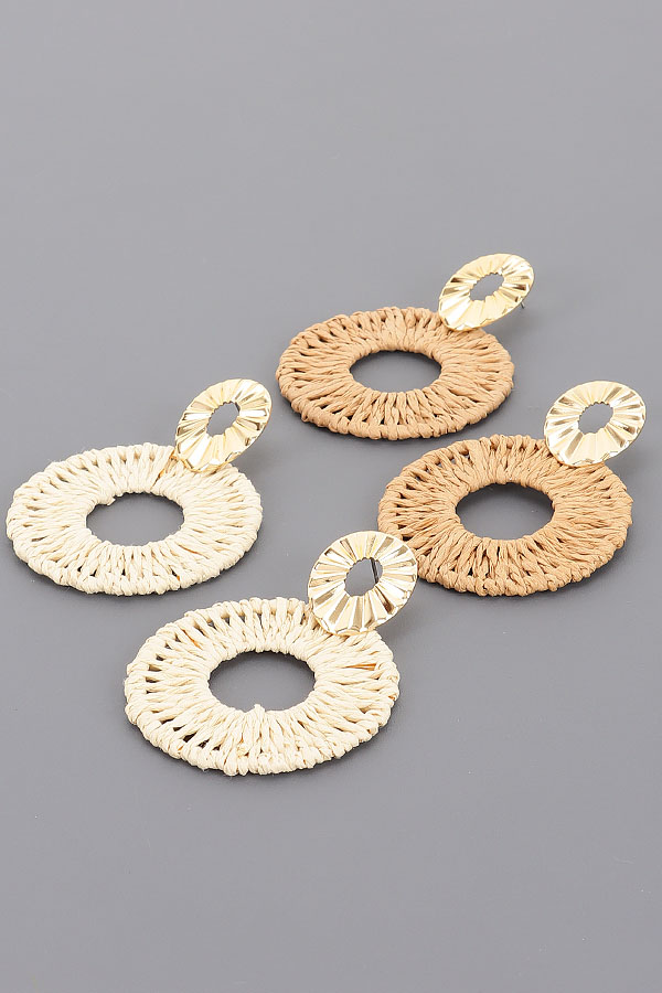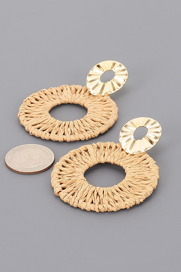 • * These are Faux Straw Earrings from H&D Accessories. They feature large, circular designs with a textured, woven - like appearance on the main part, paired with a shiny, decorative element at the top. The earrings have a chic and bohemian - style look. When you're going for a stroll on the beach or having a picnic in a sunny park, wearing these earrings can perfectly complement your casual summer outfit, adding a touch of relaxed and stylish charm to your look.