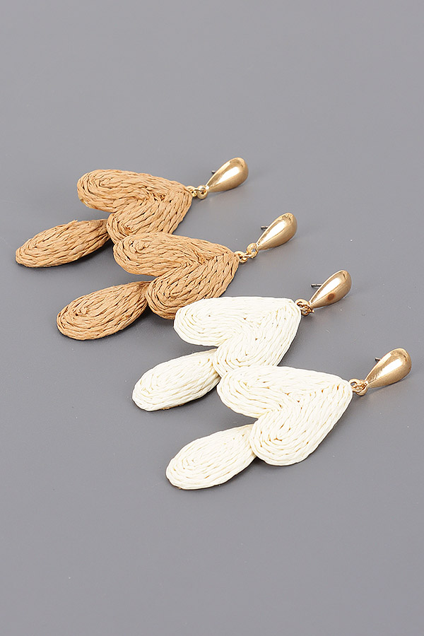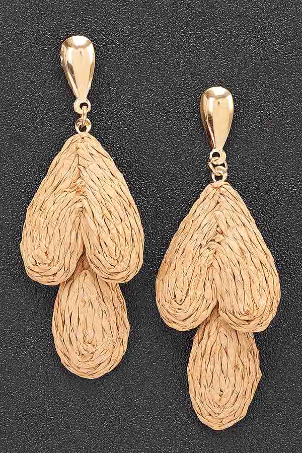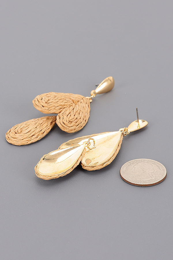 - * These are a pair of Faux Straw Earrings from H&D Accessories. They feature intricately crafted faux straw elements shaped in a layered, teardrop-like design, complemented by shiny metal components at the top. The earrings have a bohemian and natural vibe. They are perfect for adding a touch of casual elegance to a summer outfit, whether you're going for a stroll on the beach or attending a laid-back outdoor gathering.