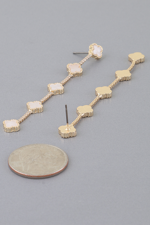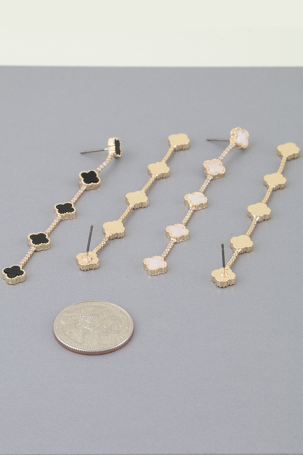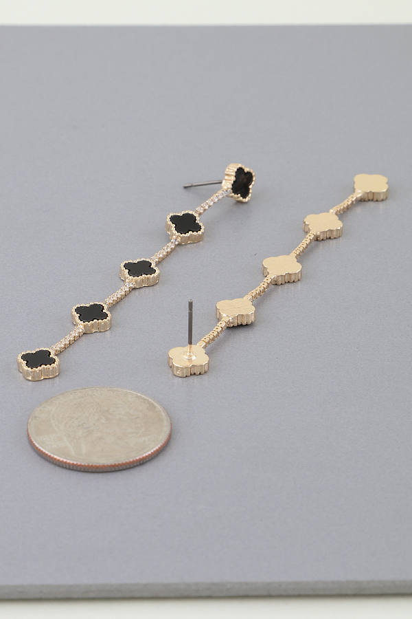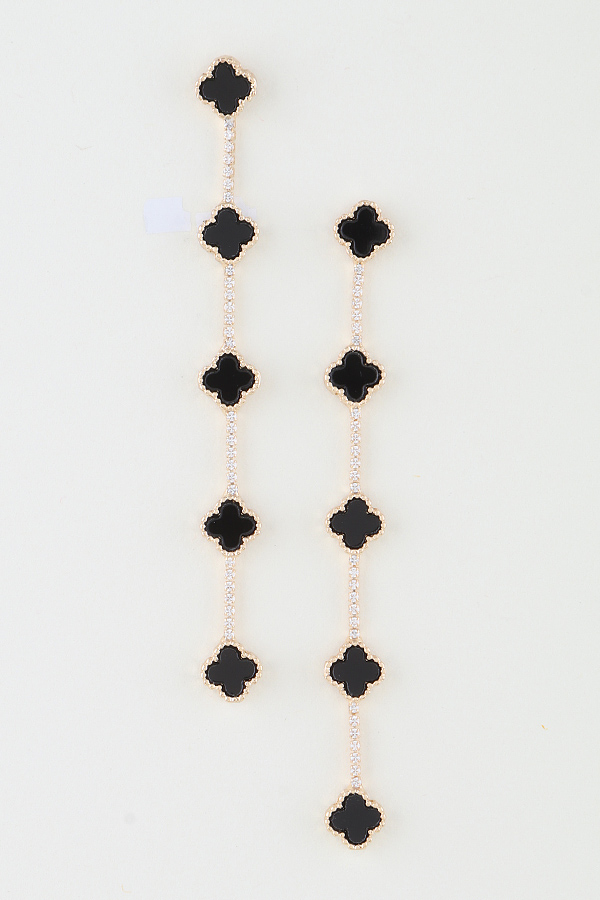 - * Jeweled Clover Charm Drop Earrings
