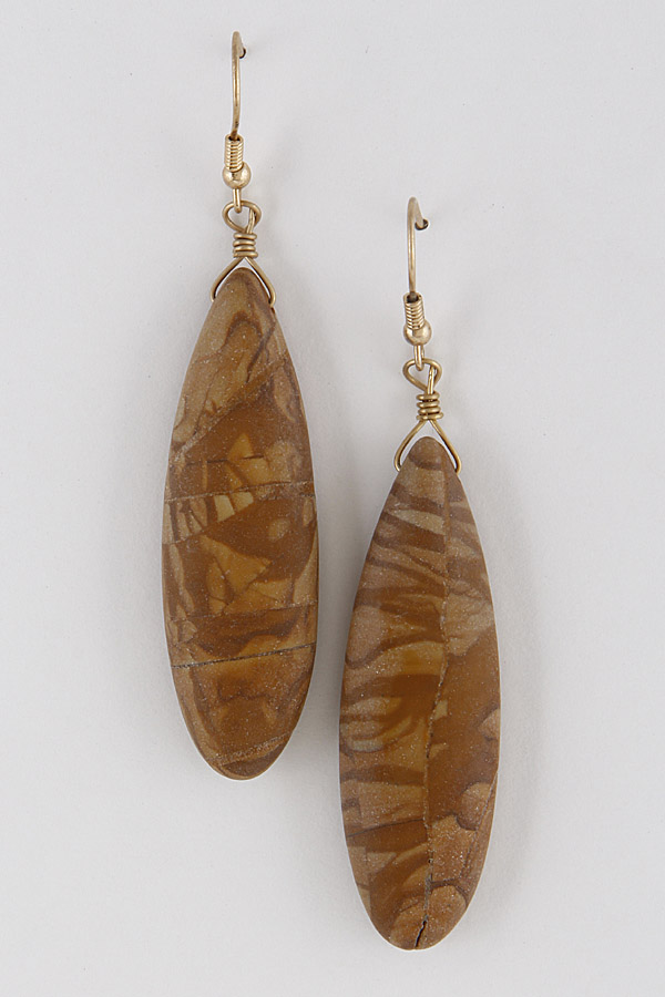 - * Oval Antique Stone Pendant Earrings 7ICA6
