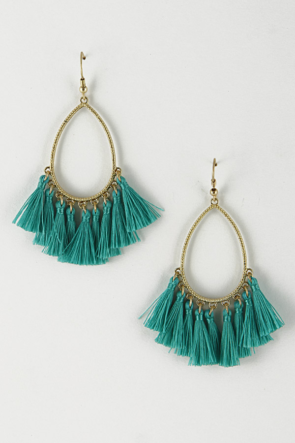 • * Metallic Teardrop Open Cut Earrings With Tassels 8FBB4