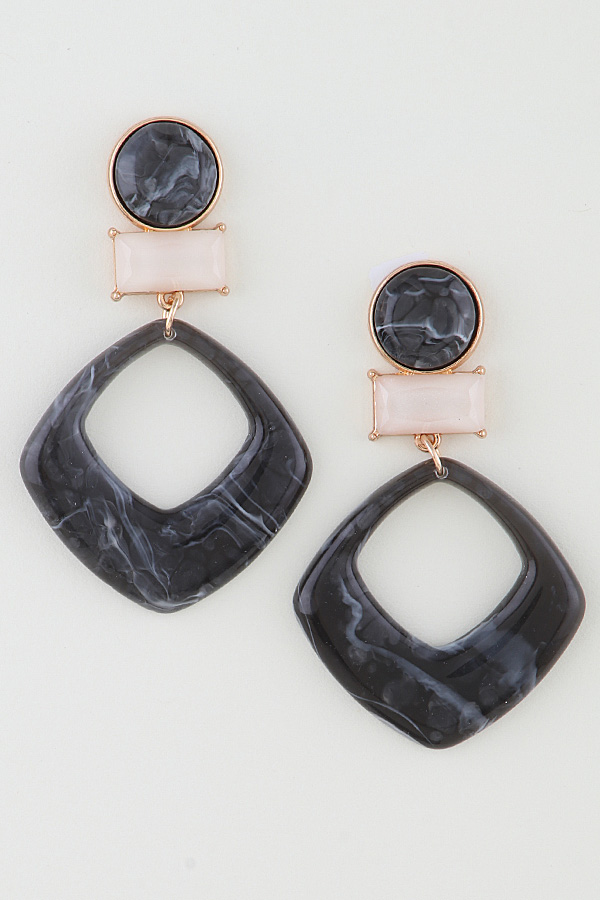 - * This is the Modern Marble Geometric Cut Earrings from H&D Accessories, featuring layered marble-patterned elements (a round top, a rectangular accent, and a large geometric cutout) paired with polished metallic details for a bold, contemporary look. Their vibrant, structured design makes them ideal for creative events, brunch dates, or stylish evening outings—effortlessly complementing flowy dresses, tailored blouses, or minimalist tops to add a vivid, artistic touch. Lightweight despite their statement shape, these earrings balance marble’s organic texture with sharp geometric lines, making them a striking accessory for anyone who favors modern, eye-catching pieces.