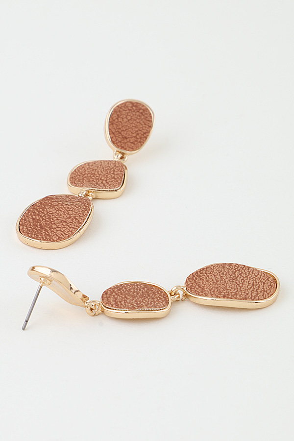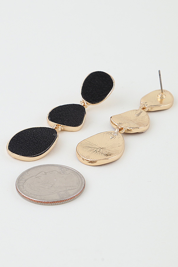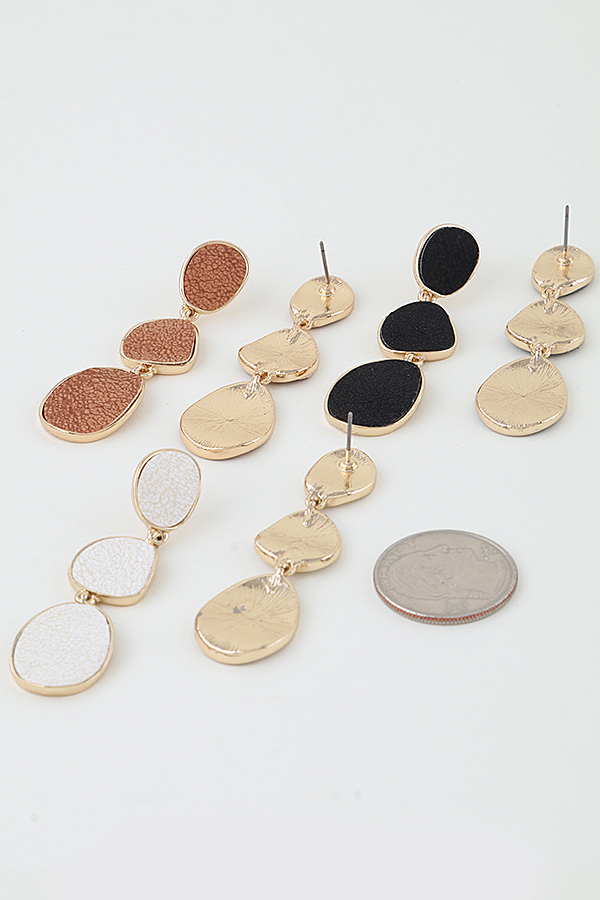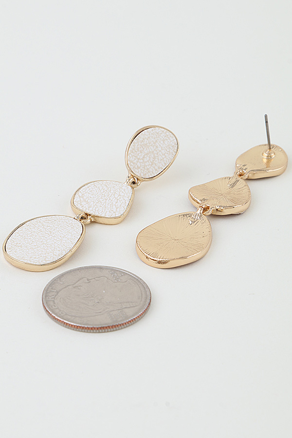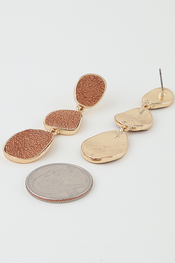 - * This Triple Hammered Texture Drop Earrings from H&D Accessories feature three layered, uniquely shaped pieces with a textured finish, framed by delicate metallic edges that add a polished touch. The dangling structure creates gentle movement, balancing subtle dimension with understated charm. They’re a versatile choice—perfect for complementing a knit sweater and jeans for a casual weekend outing, or adding a refined accent to a tailored blazer during a work meeting, blending tactile detail with effortless wearability that suits both relaxed and professional settings.