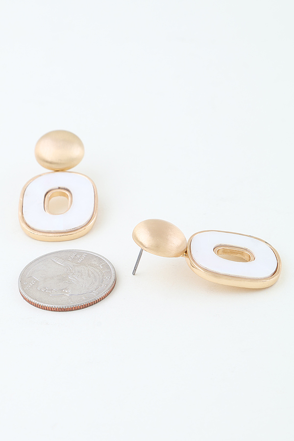 • * These Modern Stone Disc Earrings from H&D Accessories are a perfect blend of contemporary design and elegance. They feature a large, glossy stone disc with a cut - out center, framed in a sleek gold - toned border, and topped with a rounded gold element, creating a striking and sophisticated look.