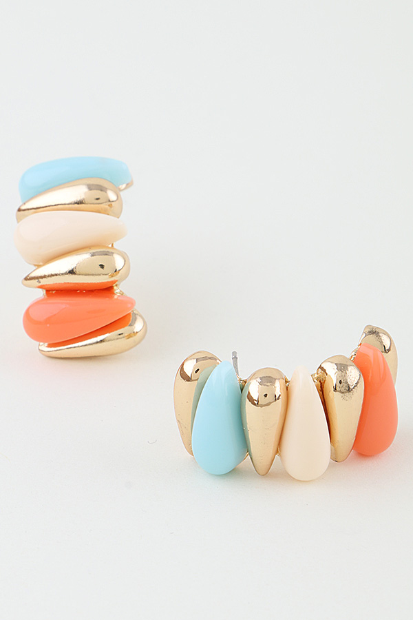 - * Multi Toned Teardrop Hoop Earrings