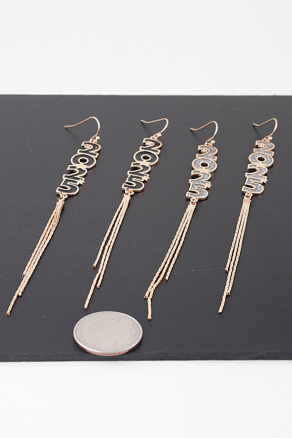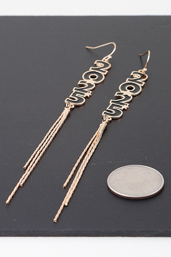 - * Discover the "2025 Drop Earrings" by H&D Accessories. Crafted with a striking black and gold finish, these earrings feature the iconic year '2025', symbolizing the arrival of the new year. Perfect for those who appreciate fashion, these earrings will enhance your collection and add a touch of glamour to any outfit.