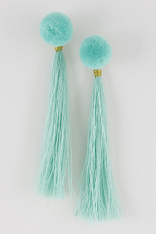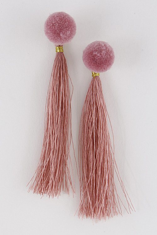 - * Tassel With PuffBall Lovely Earrings 7FBJ3