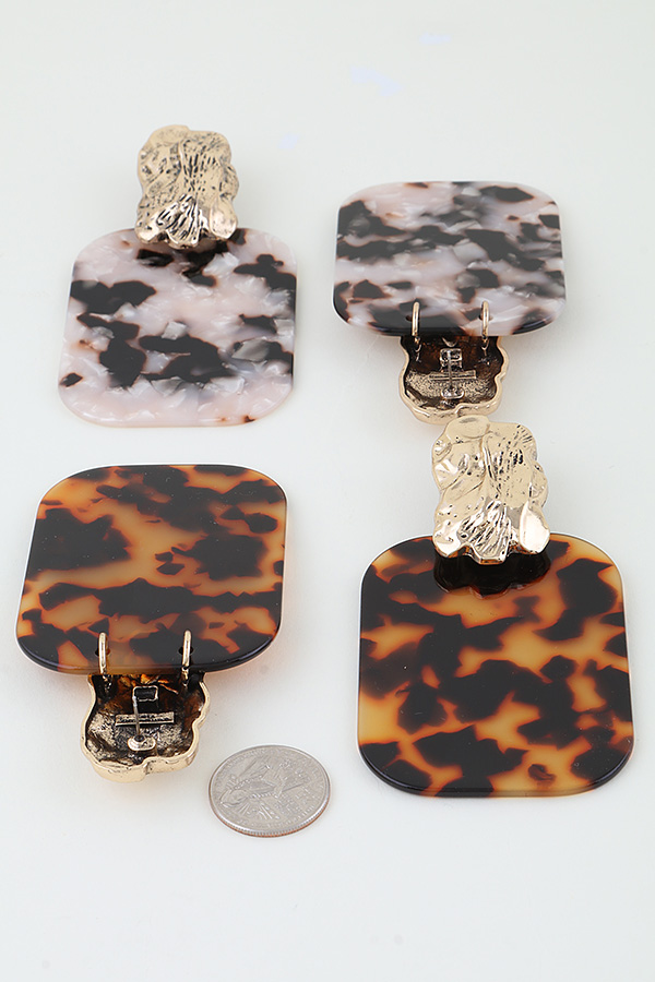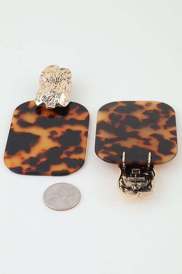 - * Hammered Tortoise Frame Drop Earrings